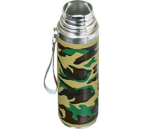 Термос диаметром 6,5 см и высотой 25 см оснащен специальной кнопкой, позволяющей наливать напитки, не отвинчивая пробку. Наличие ремешка обеспечит комфортное использование.