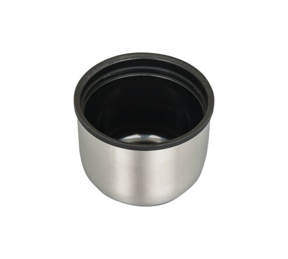 Термос диаметром 8 см и высотой 33 см выполнен в серебристом цвете. Оснащен специальной кнопкой, позволяющей наливать напитки, не отвинчивая пробку.