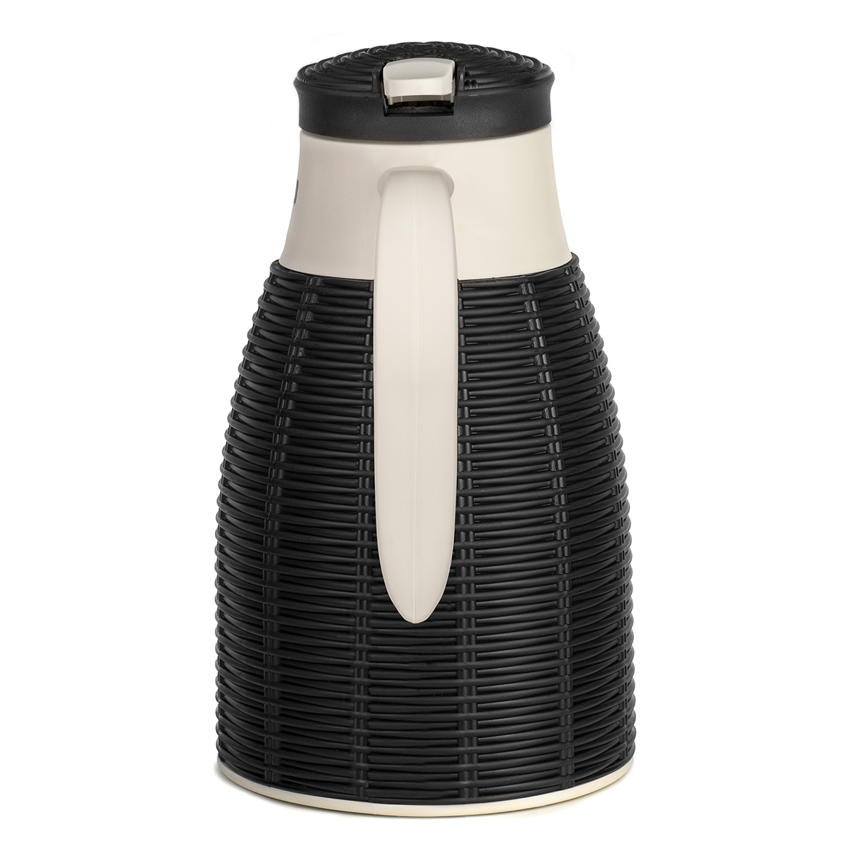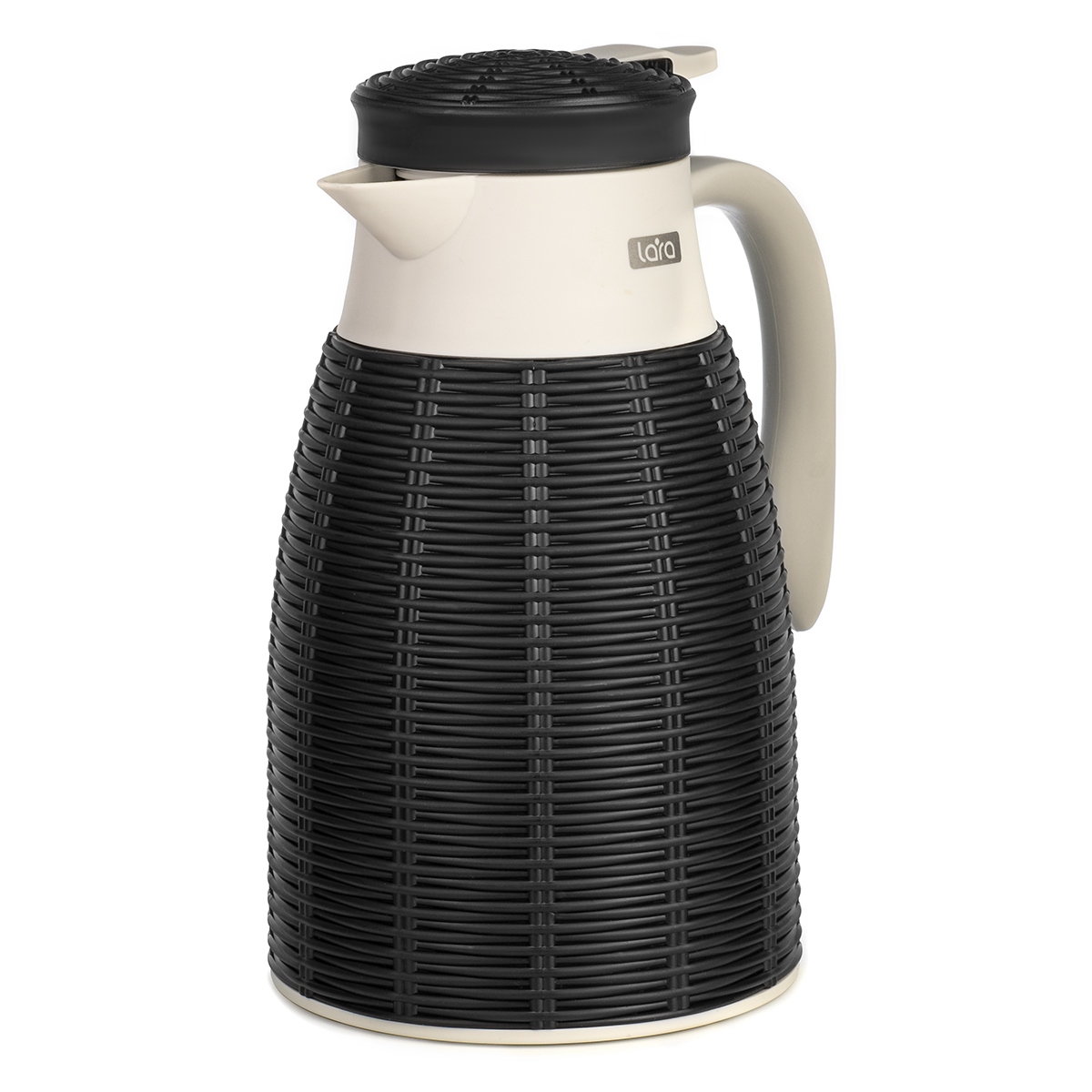 Термос со стеклянной колбой LARA LR04-80 в стилизованном под ротанг корпусе создает теплую и уютную атмосферу. Стекло не впитывает запахи и легко моется. Термоизоляционные свойства стекла вкупе с двойными стенками и зеркальным напылением увеличивают срок сохранения температуры. Элегантная открытая ручка внесет в дизайн современную нотку, как и практичная крышка-клапан: для подачи напитка достаточно нажать на рычаг, расположенный на крышке термоса. Термос со стеклянной колбой и двойными стенками LARA LR04-80 доступен в трех цветовых решениях: универсальном сером, оригинальном коричневом и строгом черном.