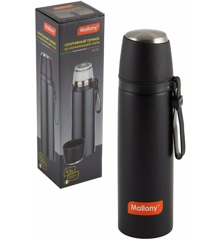 Стильный спортивный термос выполнен из нержавеющей стали (колба и корпус из 201 стали) с двойными вакуумными стенками.
