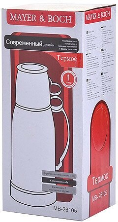 Термос MAYER&BOCH с цветным пластиковым корпусом и стеклянной внутренней колбой, является самым востребованным среди покупателей. По своим теплообменным характеристикам термос со стеклянной колбой не уступает термосам со стальными колбами, но благодаря свойствам стекла, в него можно наливать напитки с сильными, устойчивыми ароматами. Термос оснащен большой удобной ручкой и 2-мя пластиковыми кружками. Завинчивающаяся герметичная крышка предохраняет от проливаний. Термос способен сохранять необходимую температуру до 24-х часов. Легко и просто моется. Термос MAYER&BOCH пригодится в любой ситуации: будь то поход, поездка или просто чаепитие.