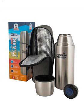 Термос с узким горлом оснащен пробкой с кнопкой, которая позволяет наливать напитки, не откручивая пробки. Термос снабжен теплоотражающим чехлом из материала Oxford с теплоотражающей подкладкой. Чехол выполняет не только защитно-декоративные функции, но и помогает сохранять температуру. Наличие чехла добавляет 2-4 градуса дополнительной температуры к температуре сохранения.