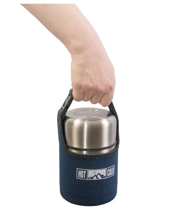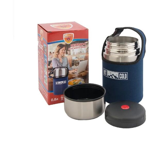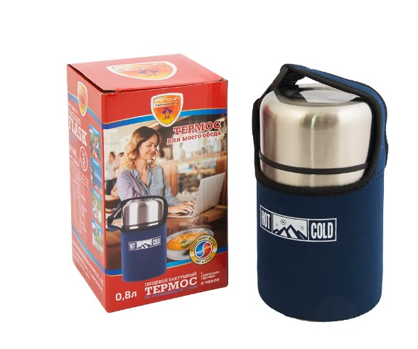 Термос в неопреновом чехле для завтраков-обедов на работу или в школу (артикул производителя BK-106B) . Чехол выполняет не только защитно-декоративные функции, но и помогает сохранить температуру. Наличие чехла прибавляет 2-4 градуса дополнительной температуры. Термос имеет широкое горло (диаметр 85 мм) объем 0,8 литра, снабжен глухой, термоизолированной пробкой. Температурные характеристики обеспечиваются глубоким вакуумом и специальным теплоотражающим покрытием на внутренней стороне колбы. Термос изготовлен из нержавеющей стали, корпус покрыт по технологии "free from trace" (грязе-устойчивый). Все пластмассовые части сделаны из первичной пластмассы, не имеющей истории переработки.