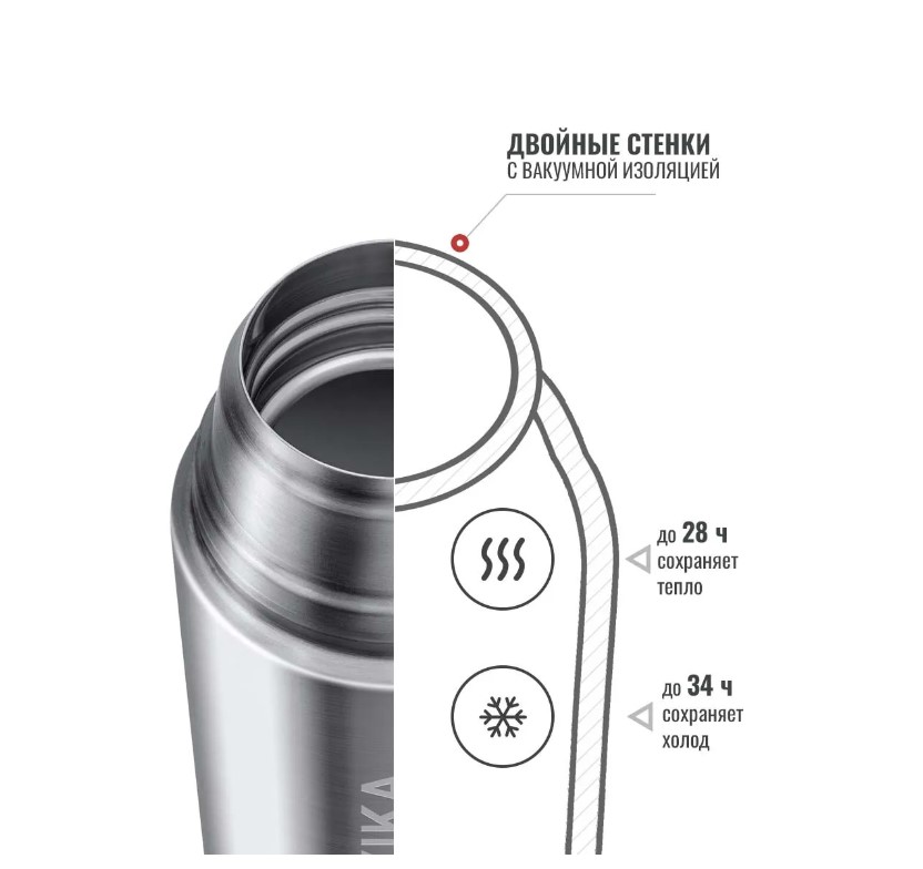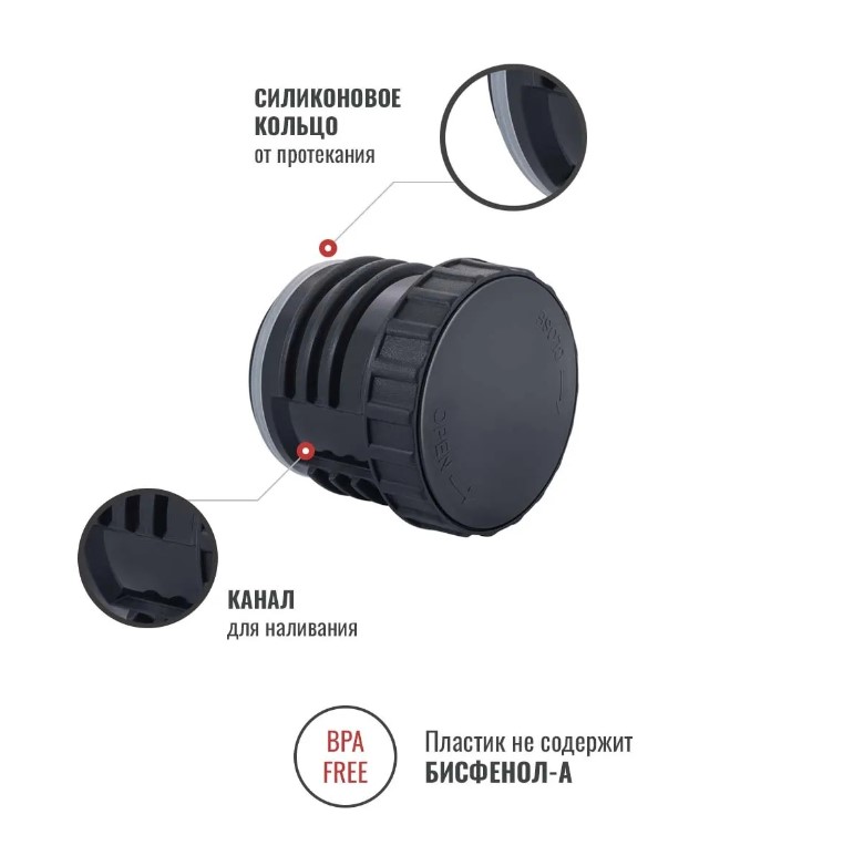 - Надежная закручивающаяся пробка с силиконовым кольцом защищает от протекания и помогает удерживать температура