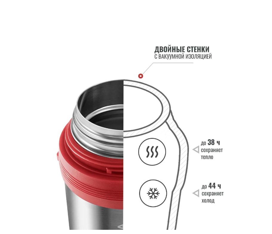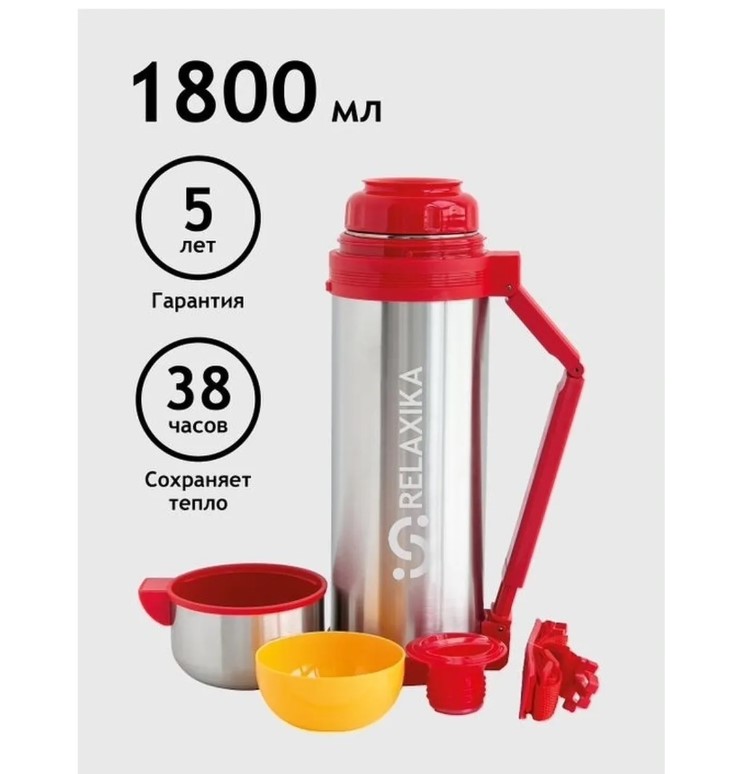 Металлический универсальный термос Relaxika 1,8 литра выполнен из высококачественной нержавеющей стали и пищевого пластика. В отличии от термоса со стеклянной колбой, термос из нержавеющей стали устойчив к ударам и повреждениям и легок в эксплуатации, а отсутствие в конструкции ситечка делает использование более гигиеничным. Термос будет особенно полезен во время отдыха на природе, в качестве посуды. Его по достоинству оценят любители туризма и походов, он станет центральным элементом походной кухни (рыболовного лагеря). Также термос 1,8 литра будет особенно полезен охотникам и рыболовам. Термос трансформируется в питьевой за счет двойной пробки, благодаря чему подойдет для похода на тренировку, для поездки на дачу или на работу. Пробка имеет предельно надежную конструкцию и надежно защитит ваш напиток от протекания. Удержание температуры: тепло - до 38 часов, холод - до 44 часов.