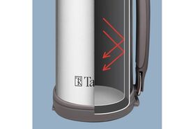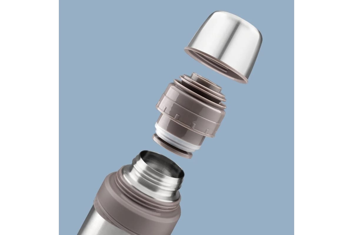 Двойные стенки и находящийся между ними вакуум минимизирует темплообмен, а внутренние стенки термоса отражают температуру содержимого. Вакуумная конструкция термоса предотвращает нагревание внешней стенки термоса, даже если он наполнен кипятком. Внутренняя кнопочная крышка гигиенична и герметична, а также минимизирует потери тепла и охлаждение напитка. При завинчивании внешней крышки клапан автоматически закрывается.