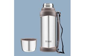 Колба термоса изготовлена из высококачественной нержавеющей стали марки 18/10 (AISI 304). Матовая полировка. Винтовая пробка, кнопочный механизм, узкое горлышко. Завинчивающаяся крышка-кружка. Термос снабжен удобной компактной ручкой и ремешком для переноски. Цвет пластиковых элементов (PP) - светло-коричневый.