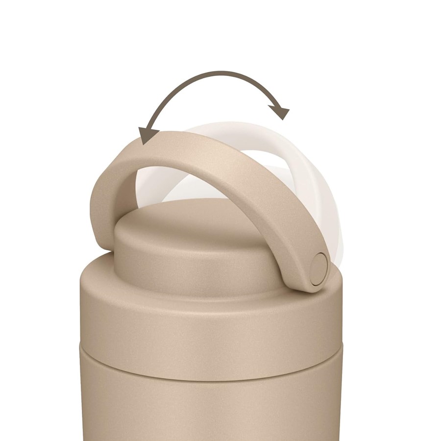 складная ручка для удобства переноски: поворачивается в любом направлении. интегрируется в плоскость крышки-пробки