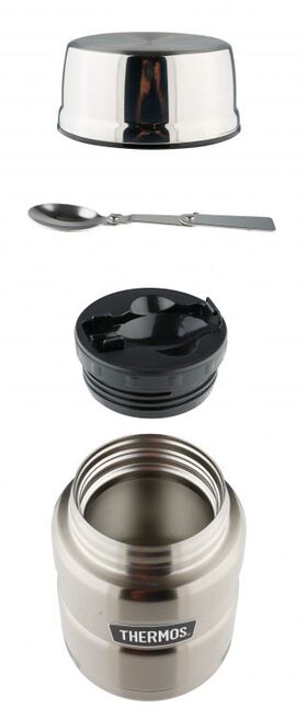 Описание Широкое горло, полноразмерная крышка-чашка и металлическая складная ложка, позволяют использовать термос для первых и вторых блюд. Небьющиеся стенки термоса из нержавеющей пружинной стали способны противостоять внешним повреждениям и вмятинам.