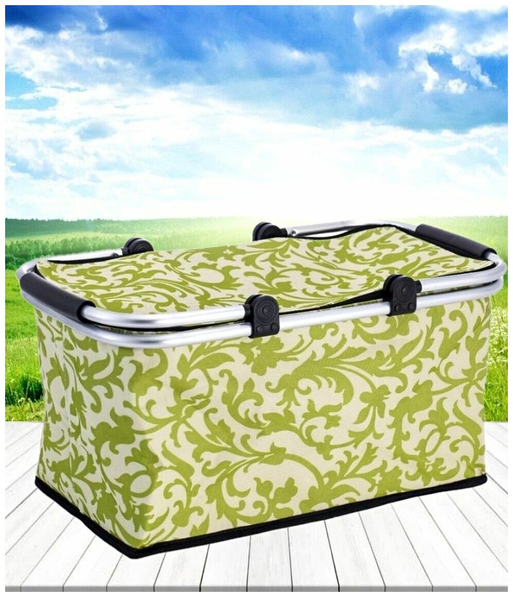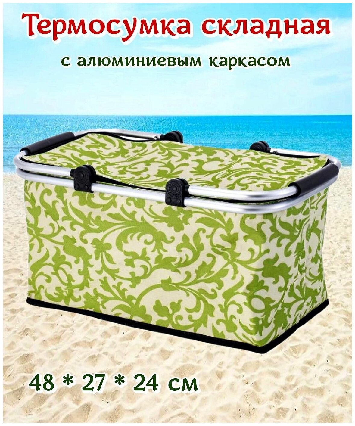 Складная термосумка с алюминиевым каркасом Ecos CB-7046, зеленый узор, 48x27x24см 104855 прекрасно подойдет для пикника большой компанией.