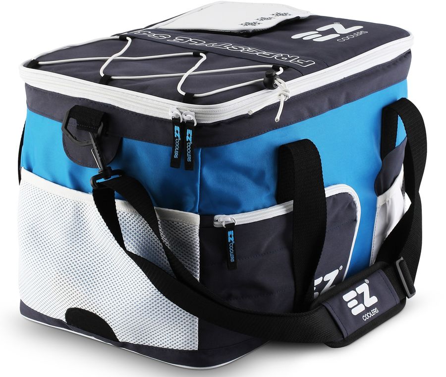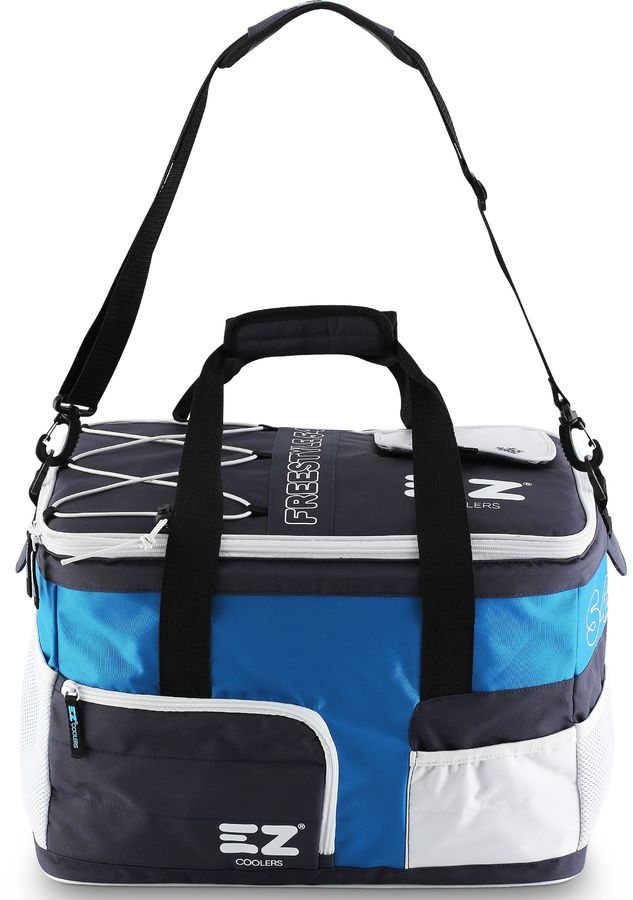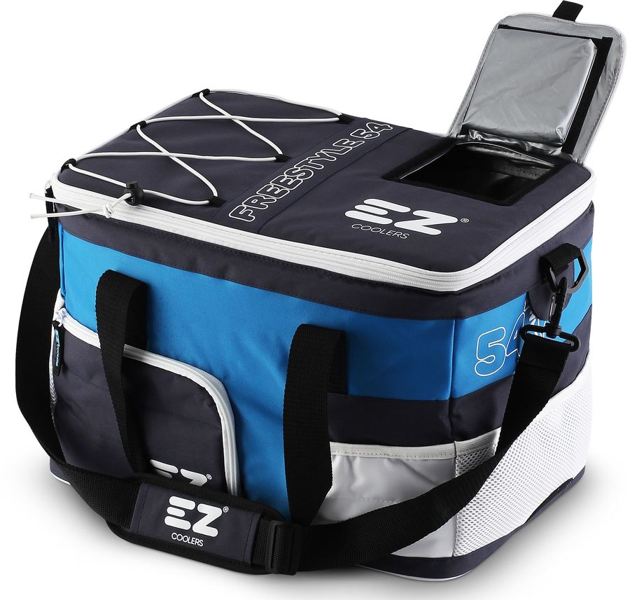 Сумка-холодильник большого размера со съемным плечевым ремнем и клапаном быстрого доступа.