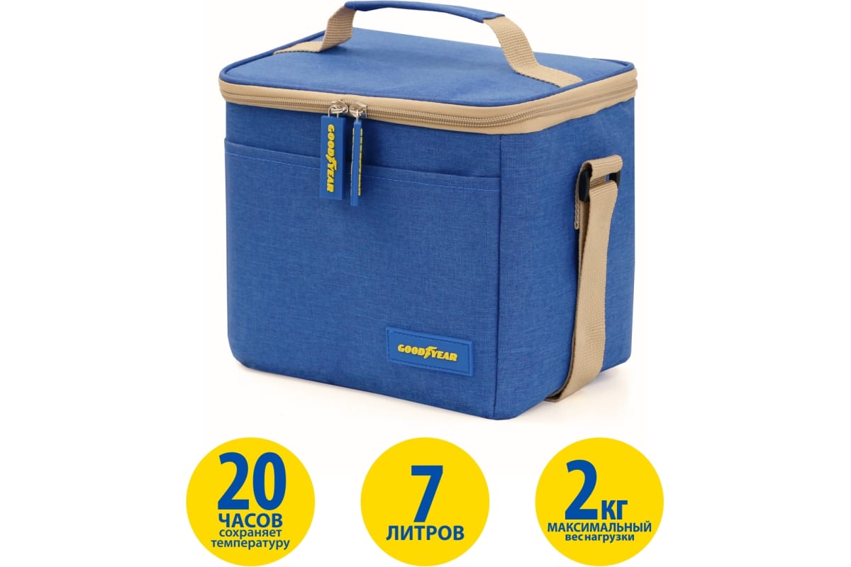 Термосумка Goodyear удобна и практична в использовании. Наплечный ремень легко регулируется, плотная тканевая накладка на ручке повышает комфорт при переноске заполненной сумки. Во внешний карман можно убрать необходимые мелочи, а внутренний сетчатый карман позволит правильно разместить аккумулятора холода.