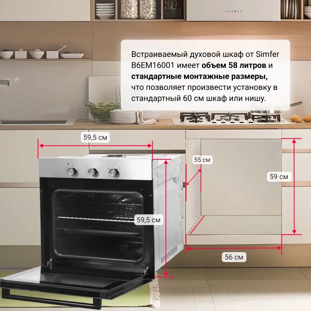 Характеристики Электрический духовой шкаф Simfer B6EM16011, 5 режимов работы