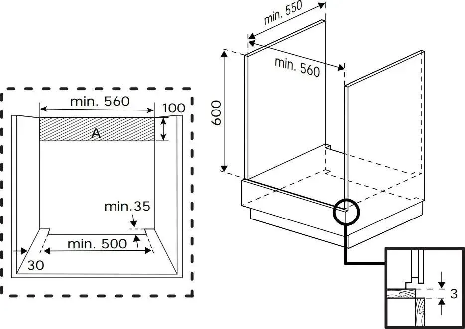 Ширина встраивания, см