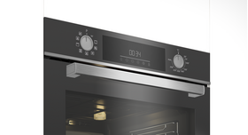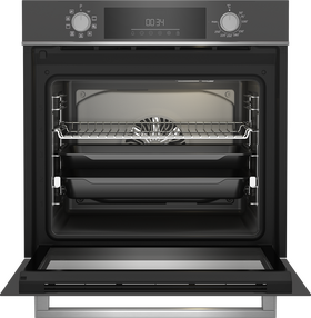Особенности духовки, плиты: Быстрый нагрев, Вентилятор охлаждения, Встроенные часы, Дисплей, Доводчик дверцы духовки, Хромированные направляющие