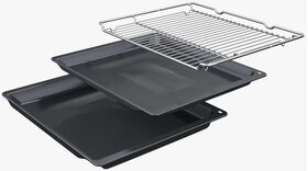 Аксессуары в комплекте: 1 х Противень эмалированный, 1 х Решетка, 1 х Универсальный противень