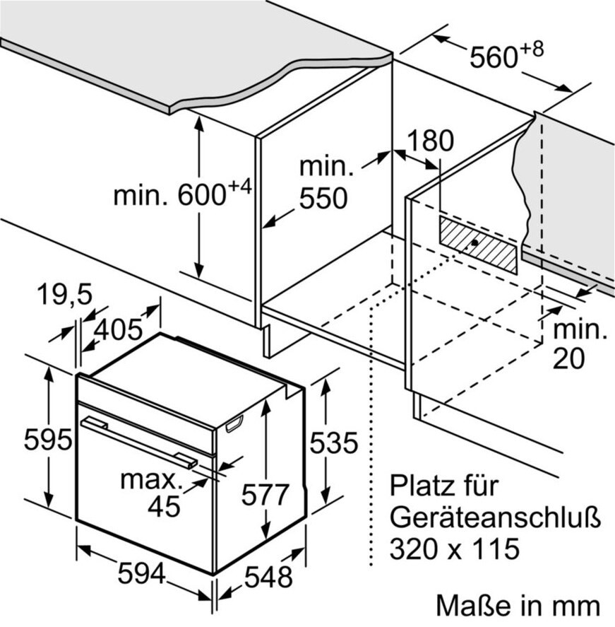 Размеры для встраивания (ВхШхГ) : 595x560x550 мм