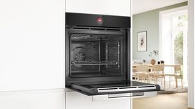 Дополнительная информация Система помощи духовке с голосовым управлением, Электронное управление: BE61, Электронные часы, Предлагаемая температура, Отображение фактической температуры. Управление отоплением., Сторона, обращенная к двери: пропаренная, Системы поддержки - Категории продуктов питания, Галогенное освещение, Комфортное освещение духовки (переключаемое), Системная интеграция: WLAN