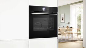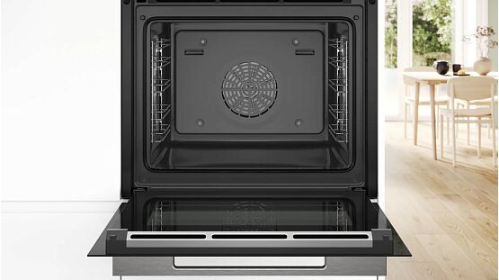 С первого взгляда, духовой шкаф привлекает своим стильным черным цветом, который легко впишется в любой интерьер. Сенсорное управление и 2.5″ цветной TFT дисплей с сенсорными кнопками делают использование удобным и простым. Электронные часы и таймер помогут контролировать процесс приготовления, а функция Home Connect позволит управлять духовкой даже на расстоянии.