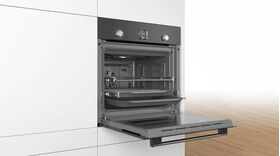 Удобный и безопасный доступ к блюдам на противнях благодаря плавно выдвигающимся телескопическим направляющим на 2 уровнях.