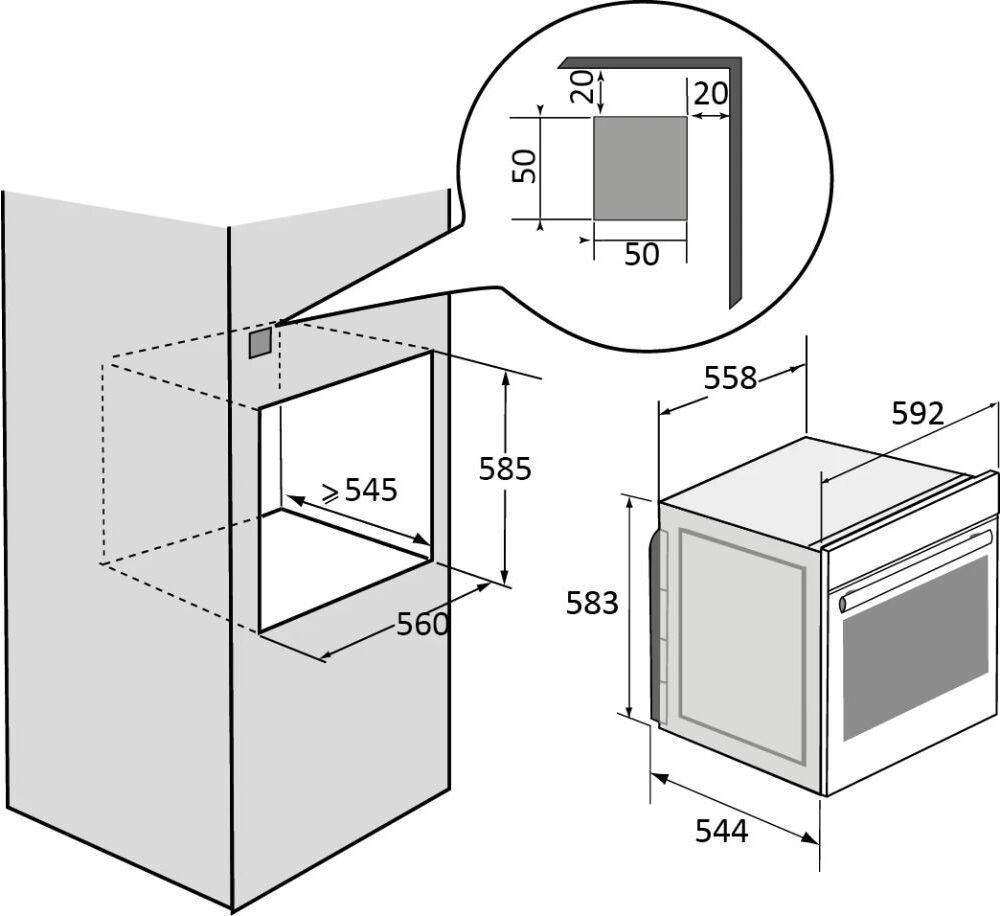 Размеры ниши для встраивания ВxШxГ (мм)585x560x550