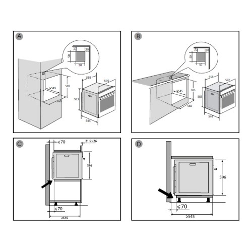 Размеры ниши для встраивания ВxШxГ (мм)585x560x550