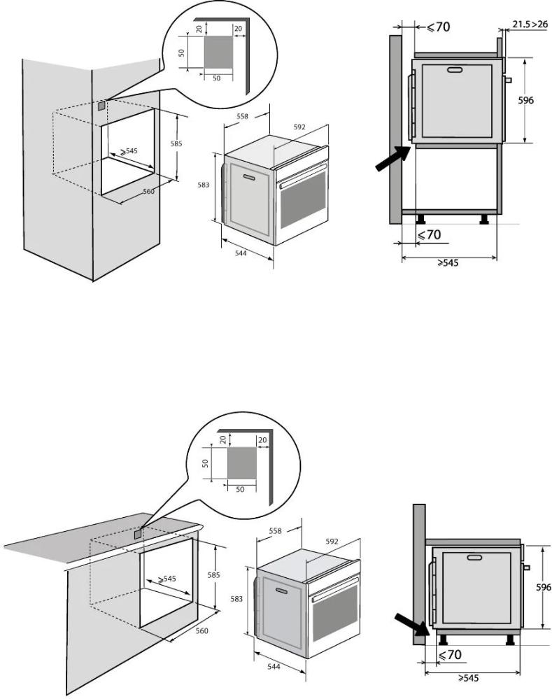 Размеры ниши для встраивания ВxШxГ (мм)585X560X550