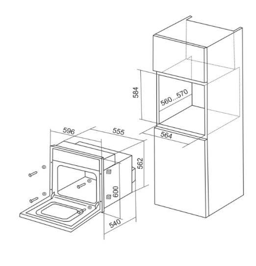 Размеры ниши ВхШхГ, см 58.4х56.4х56-57