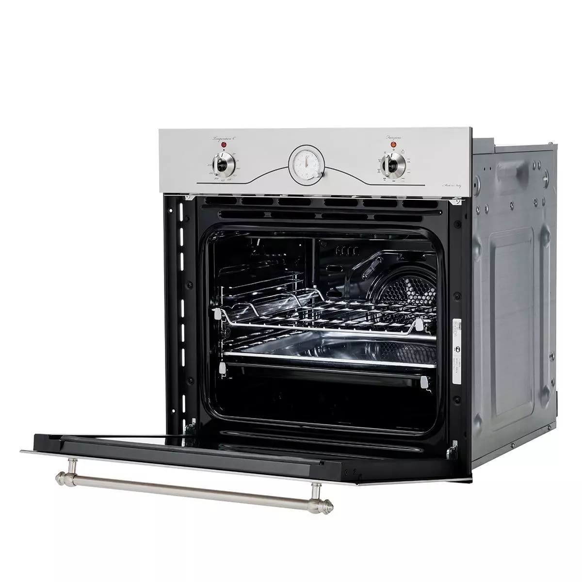 Электрический духовой шкаф DELONGHI CM 9 X RUS цвета «серебристый металлик» гармонично сочетается с другой бытовой техникой. Данная модель оснащена 9 режимами нагрева, в том числе, «Гриль + конвекция» и «Выпекание + конвекция», что обеспечивает оптимальные условия приготовления разных блюд. Телескопические направляющие гарантируют устойчивое положение тяжелых противней, а система охлаждения защищает от перегрева, что повышает комфорт и безопасность эксплуатации.