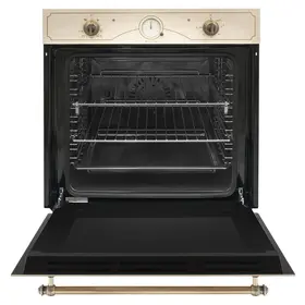 Особенности духовки, плиты: Быстрый нагрев, Вентилятор охлаждения, Встроенные часы, Дизайн Ретро, Электромеханический вертел, Хромированные направляющие, Защитное покрытие от отпечатков пальцев