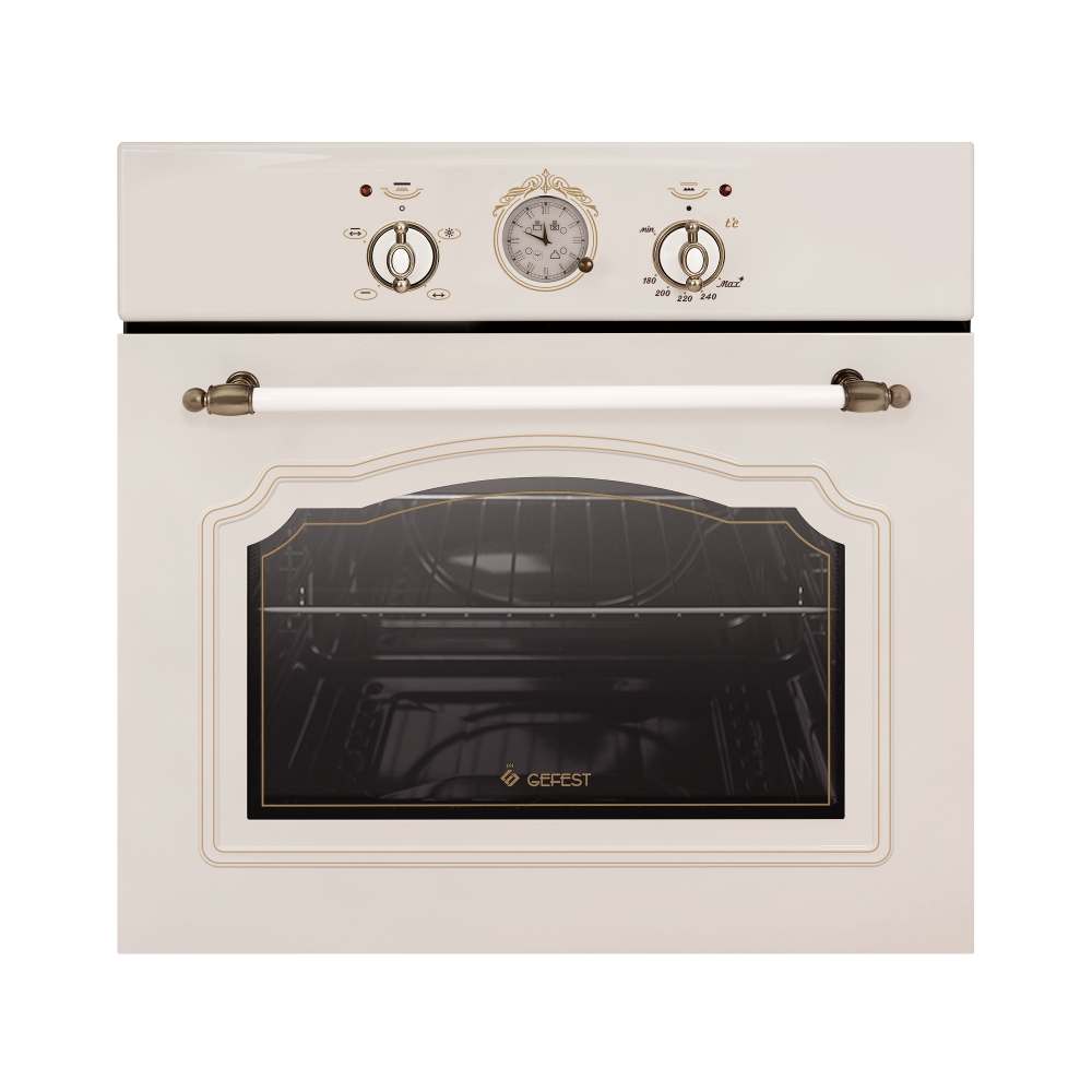 конструкция не предусматривает очистку духовки паром; вентилятор охлаждения, масса нетто 31.9 кг, диапазон номинальных напряжений 220-230В, класс энергобезопасности I, съёмное стекло дверцы, съёмная дверца, работает на сжиженном пропан-бутане и природном газе метане, присоединительная резьба газопровода G 1/2; диапазон температур работы духовки: 170-240°C