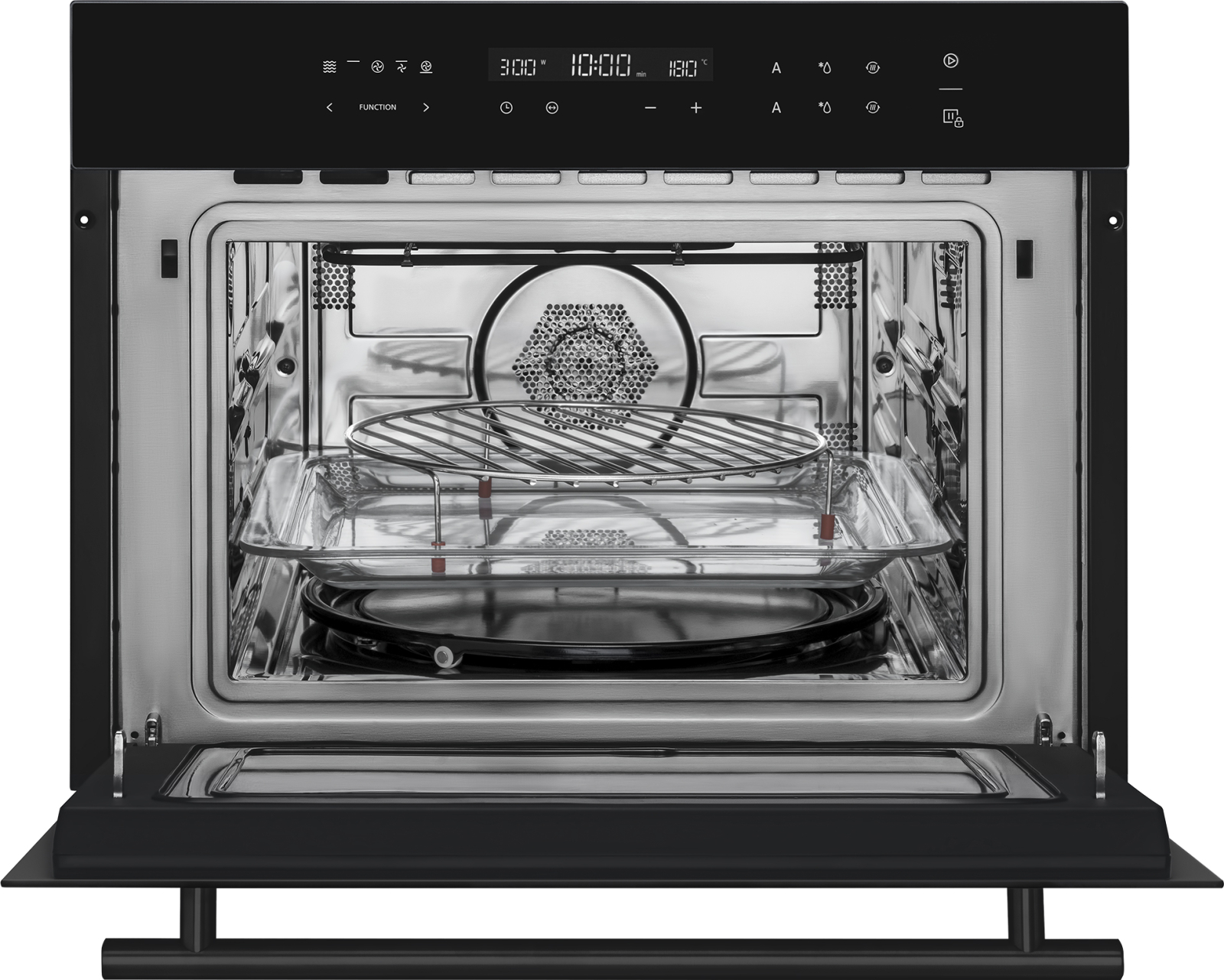 Аксессуары: круглая подставка-решетка для гриля, прямоугольная решетка для гриля, универсальный поддон, вращающийся поддон