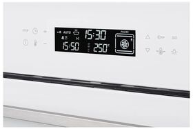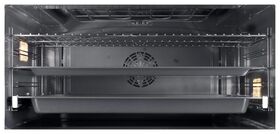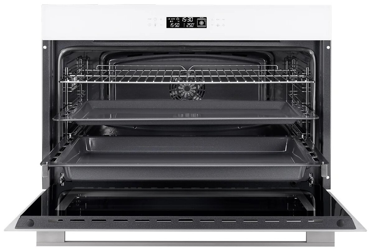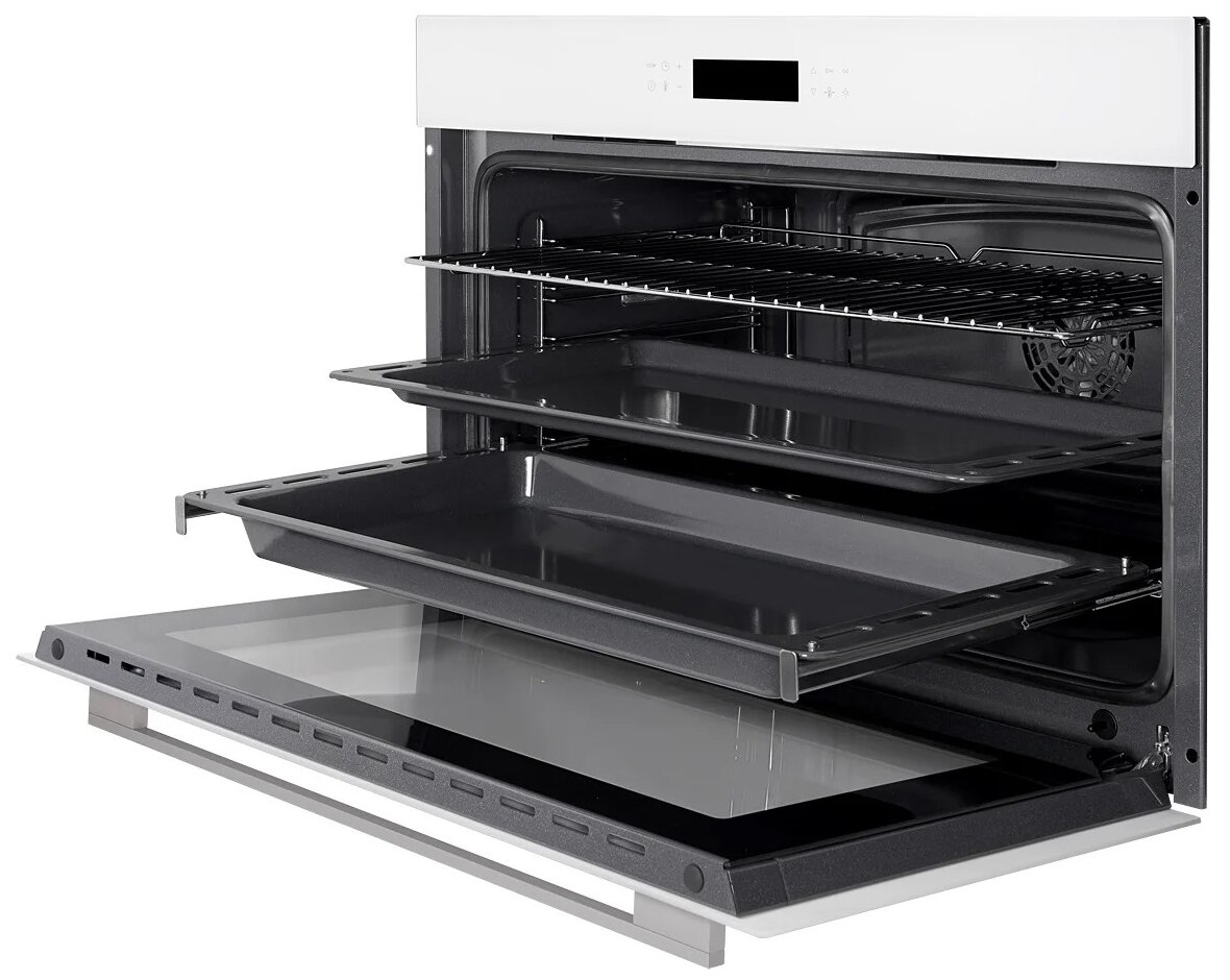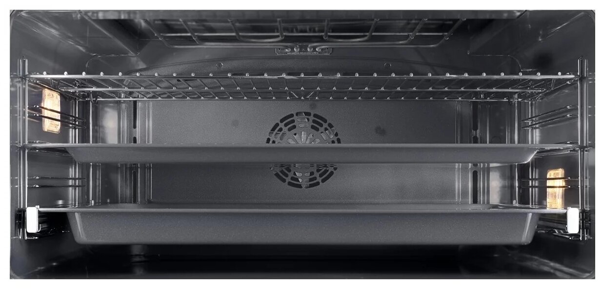 турбо режим, традиционный нагрев с турбо режимом, поддержание температуры, традиционный нагрев с конвекцией; тип часов: электронные; вентилятор охлаждения; коллекция Hi-Tech; направляющие для противней хромированные, съемные; съемная дверца духового шкафа, съемное внутреннее стекло; доводчик двери; размер ниши для встраивания под столешницу (ВхШхГ), мм 595×862×570; размер ниши для встраивания в колонну (ВхШхГ), мм 595×862×570