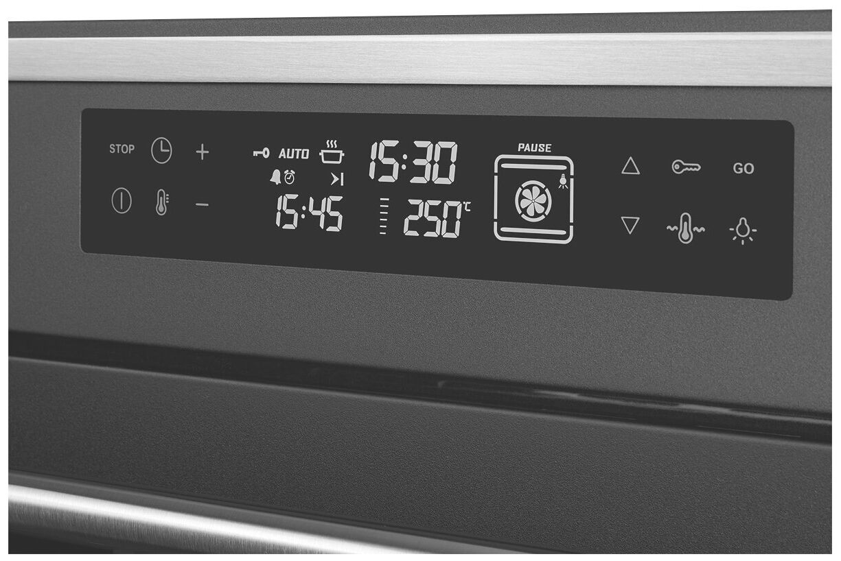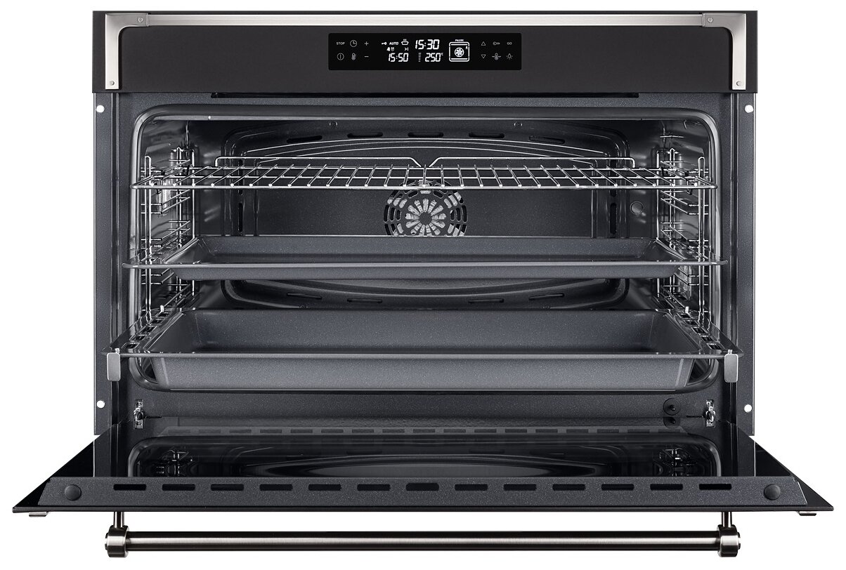 коллекция Classic, цвет антрацит, цвет фурнитуры серебро; доводчик двери; турбо режим, традиционный нагрев с турбо режимом, поддержание температуры, традиционный нагрев с конвекцией; тип часов: электронные; вентилятор охлаждения; направляющие для противней хромированные, съемные; съемная дверца духового шкафа, съемное внутреннее стекло; размер ниши для встраивания под столешницу (ВхШхГ), мм 595×862×570; размер ниши для встраивания в колонну (ВхШхГ), мм 595×862×570; размер ниши для встраивания под столешницу (ВхШхГ), мм 595×862×570