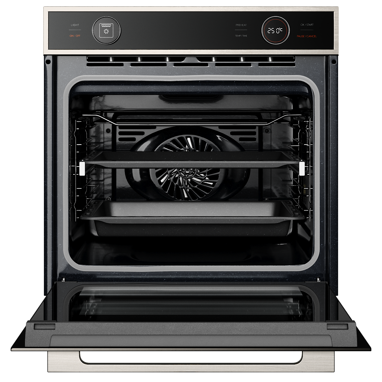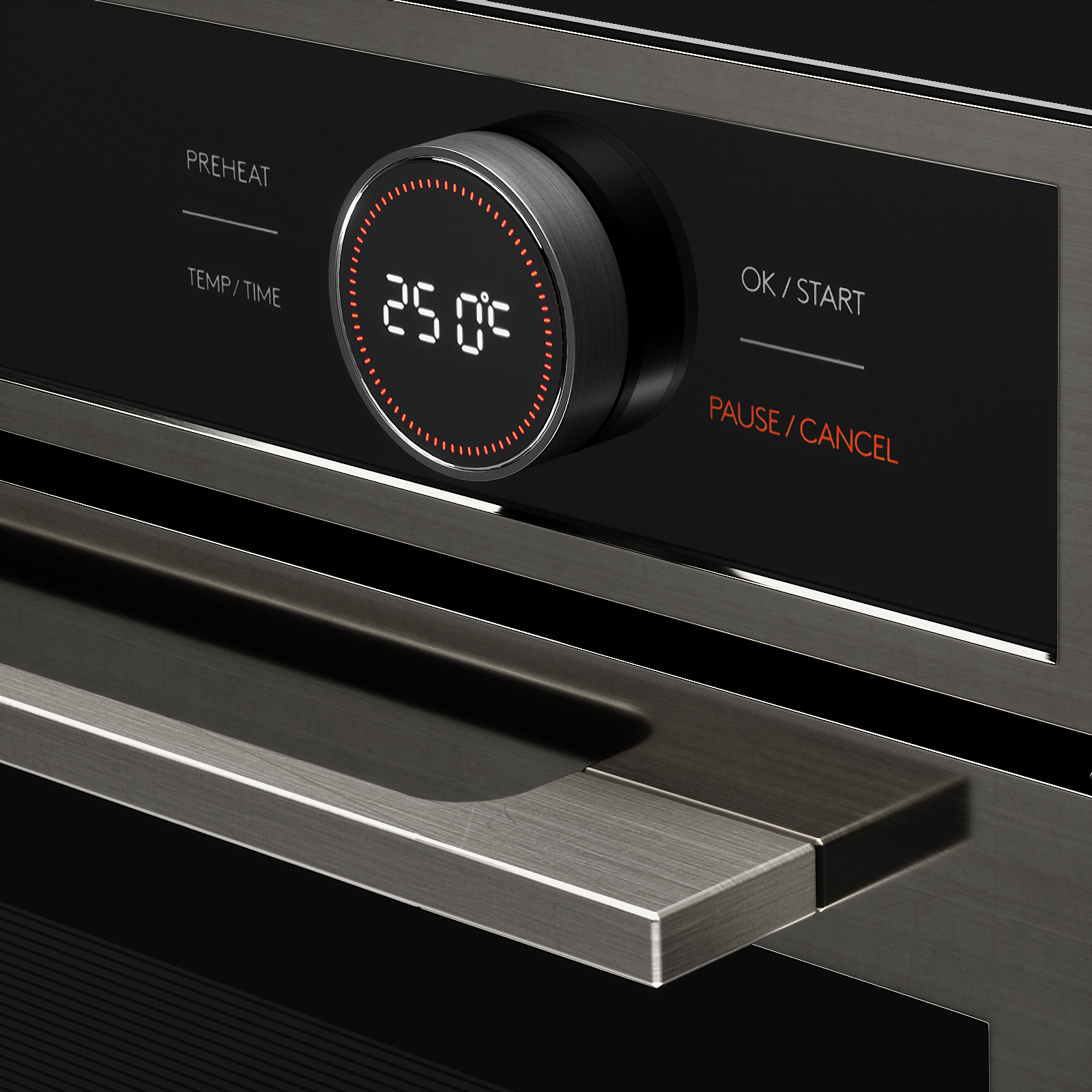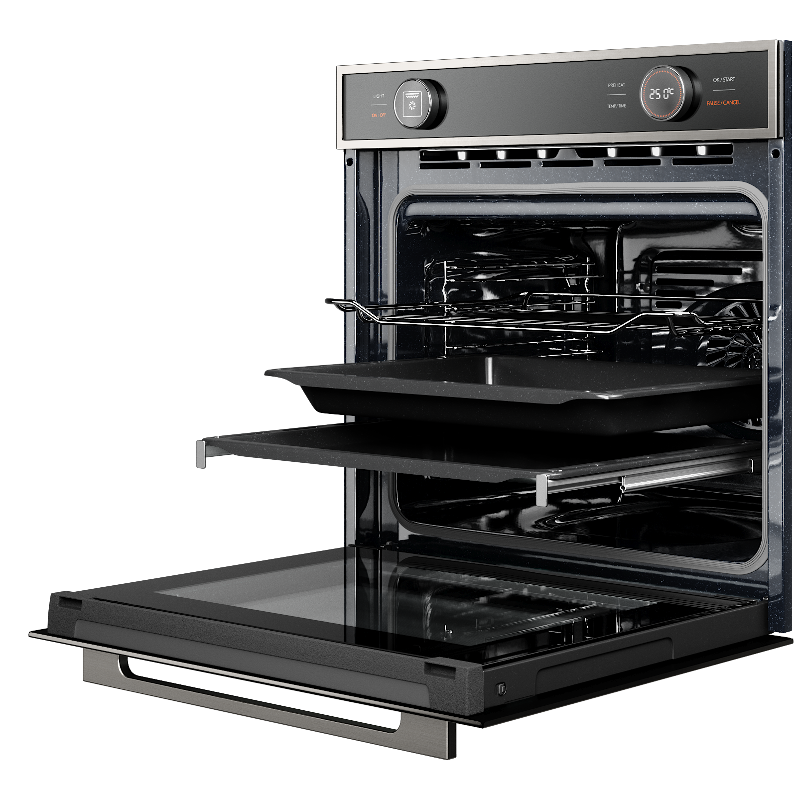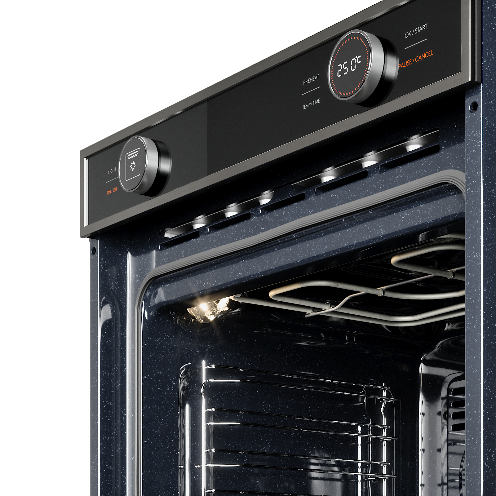Материал панели управления - стекло, Материал фасада стекло, Цвет фурнитуры нержавеющая сталь, Таймер сенсорный, мультифункциональный. Режимы работы: Режим пицца , Нижний нагрев , Традиционный нагрев , Гриль , Макси-Гриль , Макси-Гриль с конвекцией , Разморозка , Традиционный нагрев с конвекцией