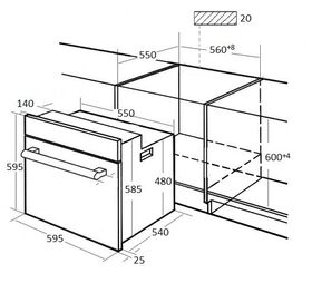 | | Общее | | Очистка внутренней поверхности | каталитическая / задняя стенка / | | Направляющие противней | телескопические на двух уровнях | | Открывание | сверху вниз | | Автодоводчик дверцы |  | | Кол-во стекол дверцы | 2 | | Защита от детей |  | | Класс энергопотребления | A | | Мощность подключения | 2.95 кВт | | Габариты (ВхШхГ) | 59.5x59.5x56.5 см | | Размеры для встраивания (ВхШхГ) | 604x568x550 мм |