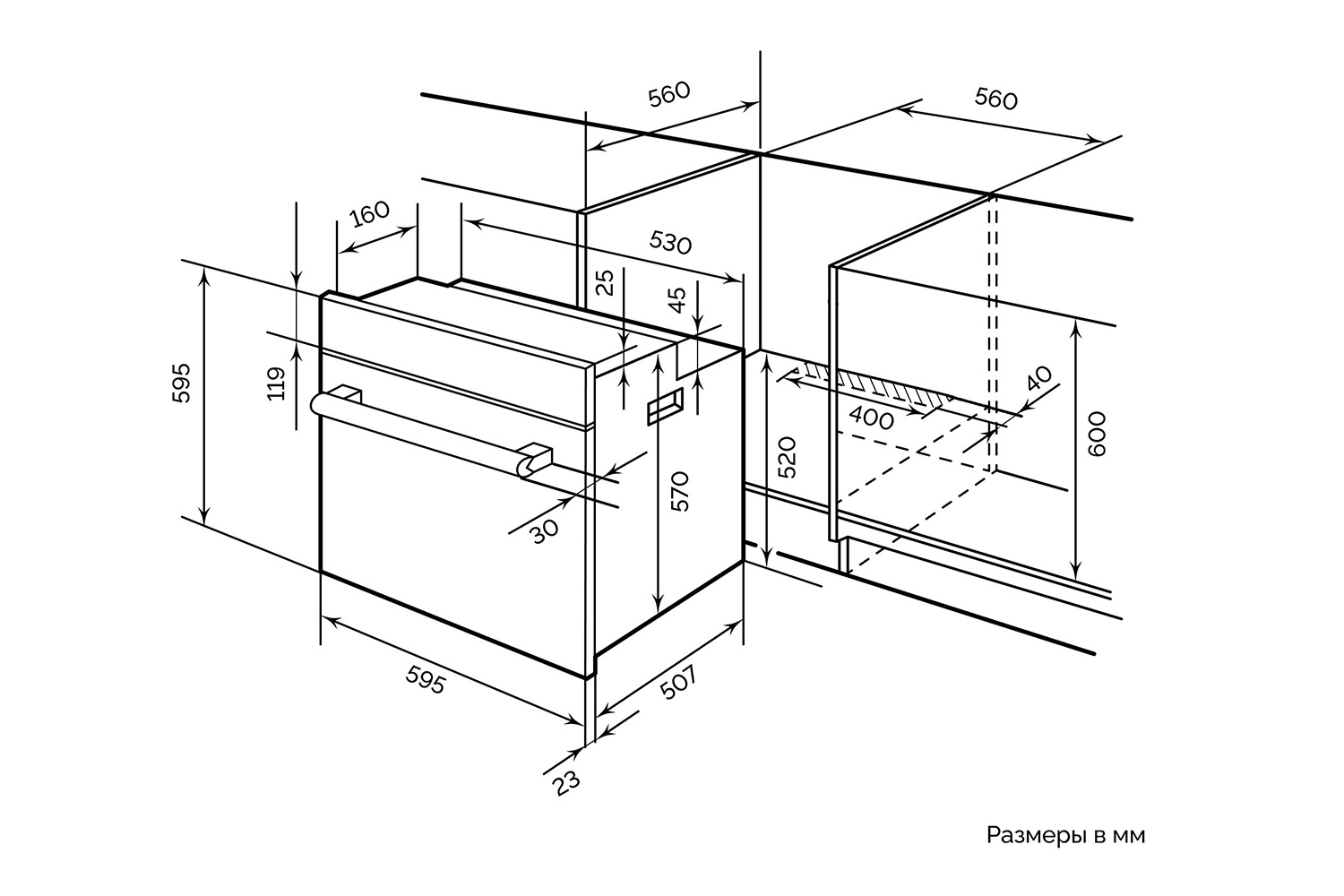 Размер ниши для встраивания (ШхВхГ) 66,5х65х58 см