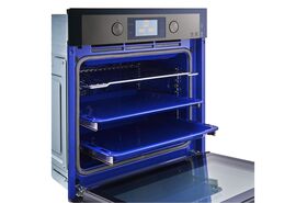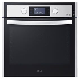 - одна телескопическая направляющая, вес 34 кг, линейный контроль температуры, приложение для смартфонов на Андроид «LG Smart Oven Global» (рецепты и cамодиагностика); глубокий противень, противень для выпечки