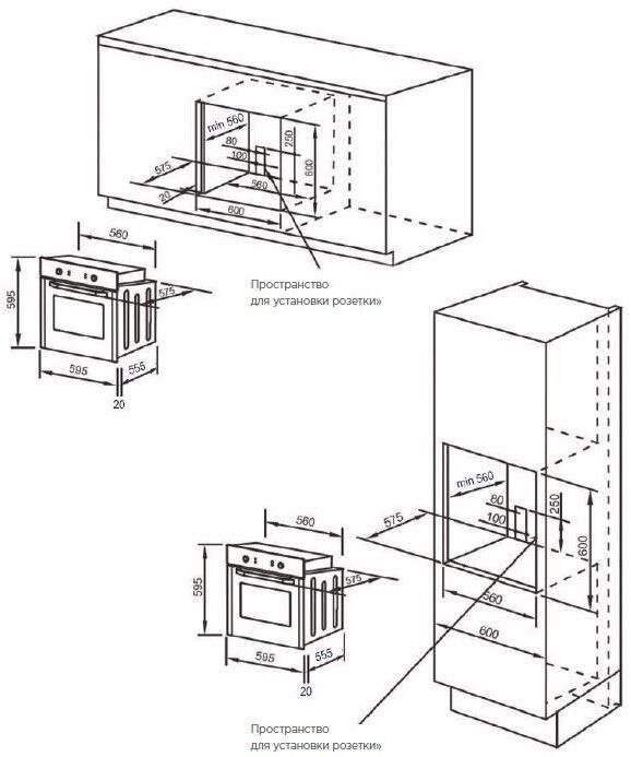 Размеры ниши для встраивания (ШхГхВ) 56 x 57.5 x 60 см