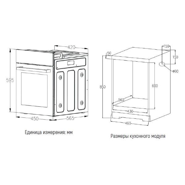 Электрический духовой шкаф Monsher MOE 4592 Acier белого и серебристого цветов. Модель из серии High-Tech оснащена камерой, вмещающей до 50 л. Устройство работает в девяти режимах и нагревает воздух до предельного показателя 250°C. Эмаль легкой очистки использована для изготовления внутреннего покрытия. На фасаде из металла и стекла располагаются поворотные регуляторы, сенсорные кнопки и цифровой дисплей.