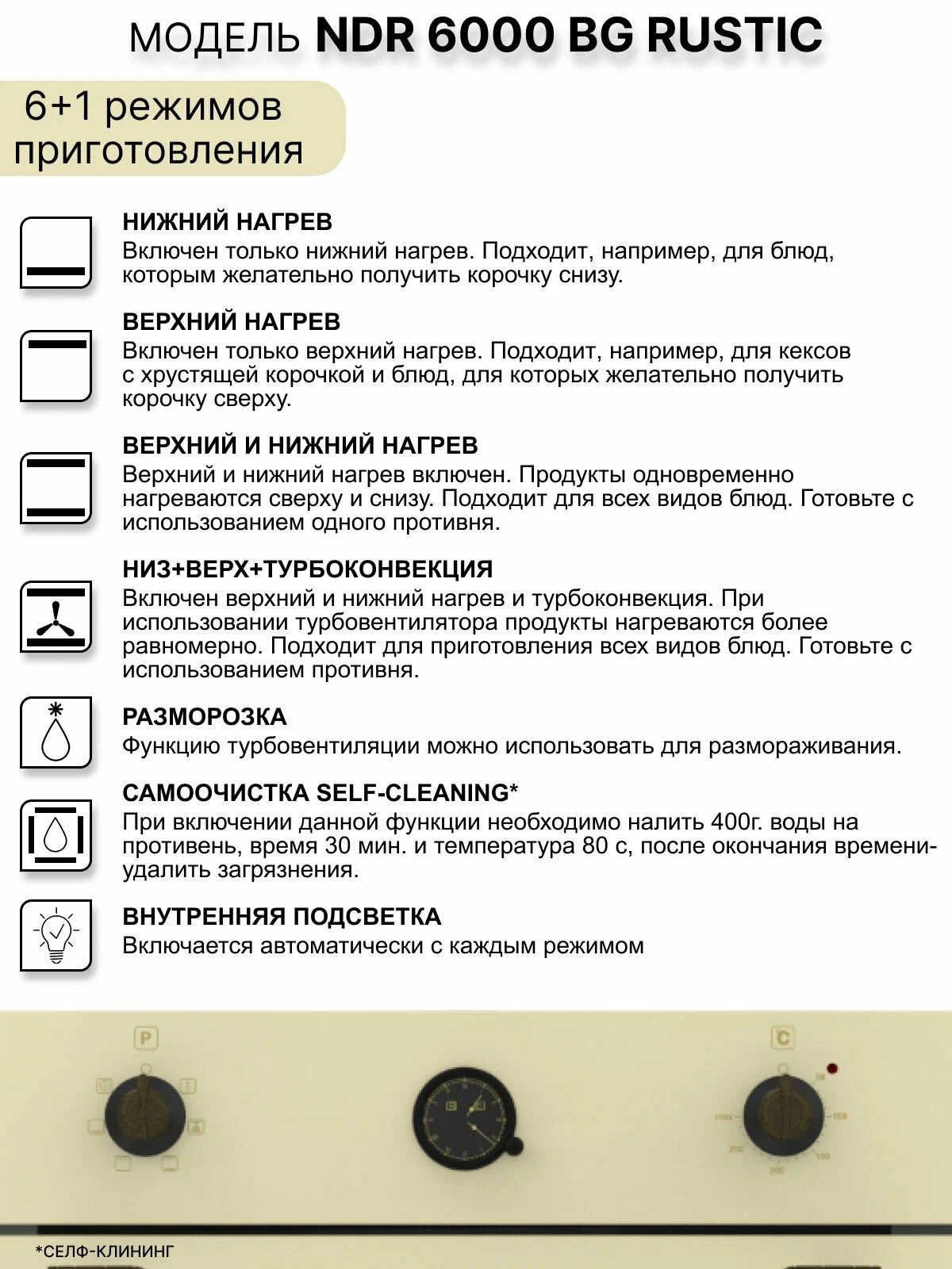 Духовой шкаф NORDEN NRD 6000 BG RUSTIC бежевый