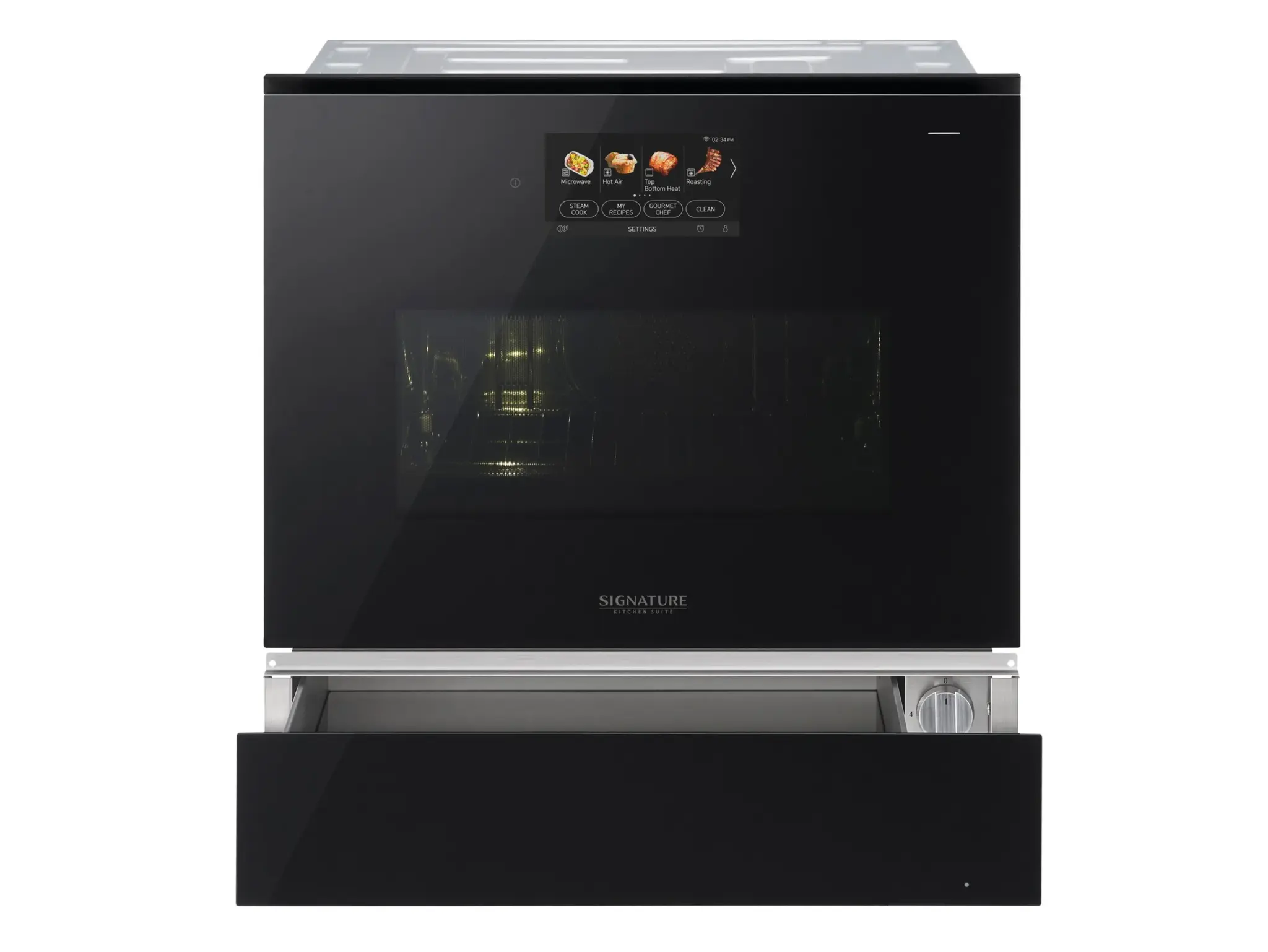 18 режимов: горячий воздух, конвекция, статический, пицца, жарка, легкая жарка, быстрый нагрев, гриль (малый и большой), доказательство, поддержание тепла, разморозка, разогрев, нижний обогрев, 100% пар, sous vide, паровая помощь