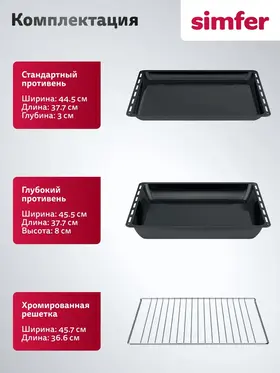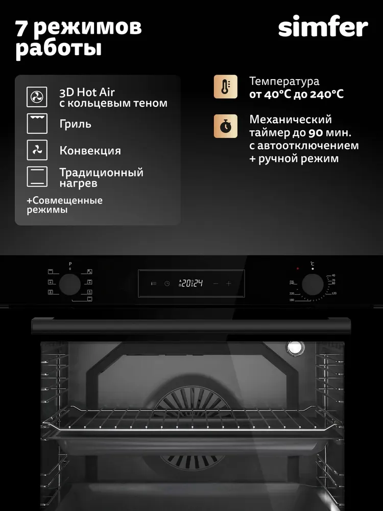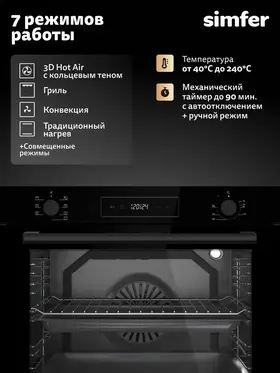 Режимы работы: Гриль, Гриль + конвекция, Конвекция, Нижний нагрев + конвекция