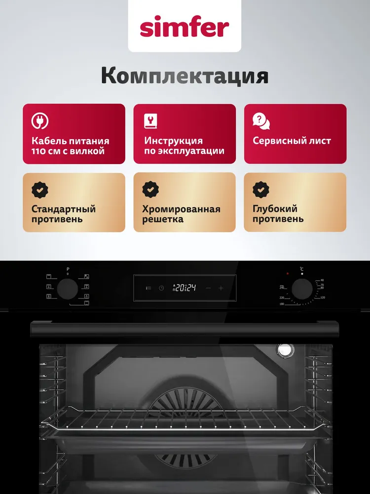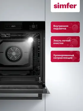 Особенности духовки, плиты: Быстрый нагрев, Вентилятор охлаждения, Дисплей, Хромированные направляющие