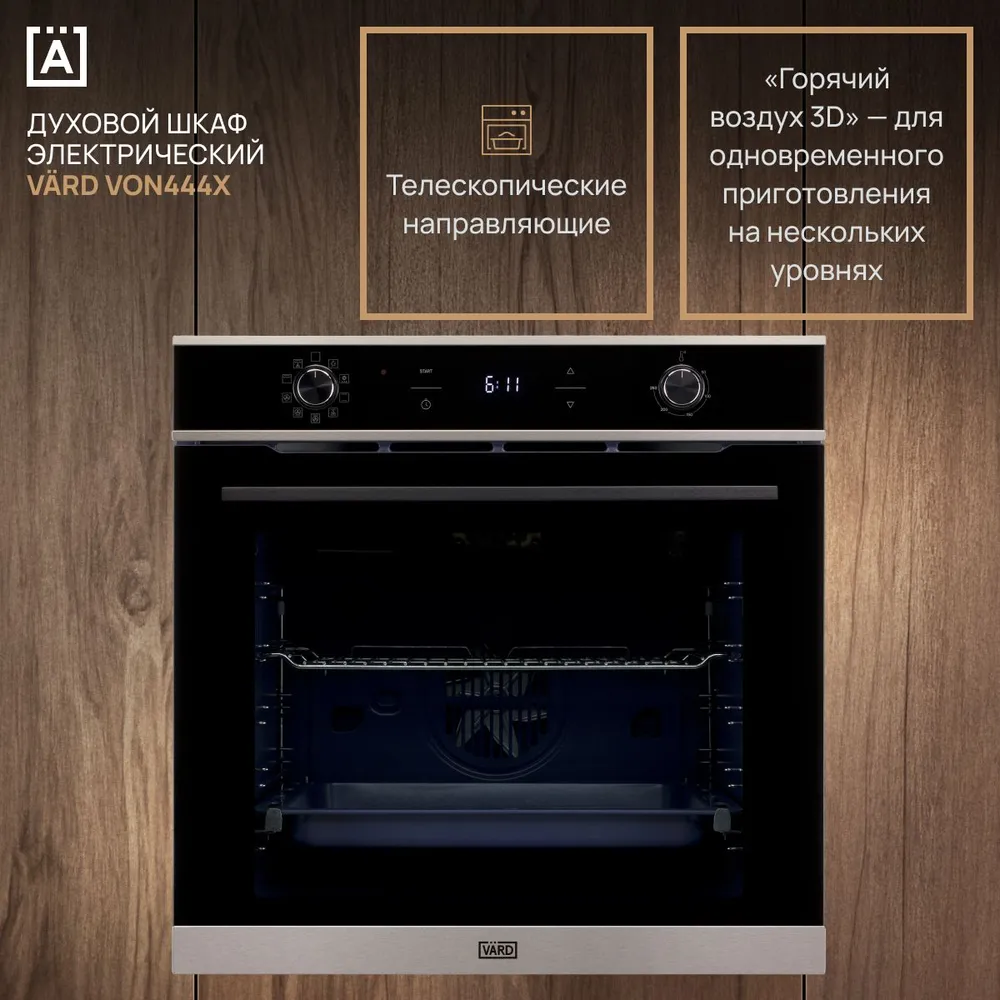Особенности духовки, плиты: Вентилятор охлаждения, Встроенные часы, Дисплей, Доводчик дверцы духовки, Термощуп
