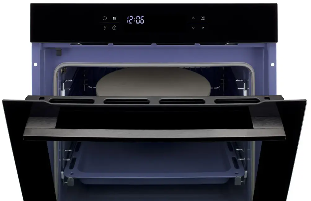 Особенности духовки, плиты: Встроенные часы, Дисплей, Доводчик дверцы духовки, Термощуп, Хромированные направляющие