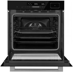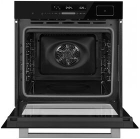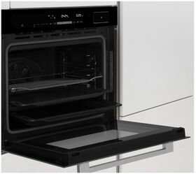 мягкие доводчики дверцы; 13 функций духового шкафа: Верхний и нижний нагрев (традиционное приготовление), Конвекция, ЭКО, Верхний и нижний нагрев + конвекция, Гриль, Двойной гриль с конвекцией, Двойной гриль, Режим для пиццы, Нижний нагрев, Разморозка, Тесто, Термощуп и дополнительная функция Пар; тип часов: электронные; вентилятор охлаждения