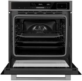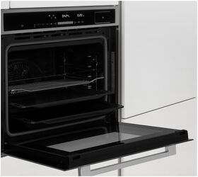 мягкие доводчики дверцы; 13 функций духового шкафа: Верхний и нижний нагрев (традиционное приготовление), Конвекция, ЭКО, Верхний и нижний нагрев + конвекция, Гриль, Двойной гриль с конвекцией, Двойной гриль, Режим для пиццы, Нижний нагрев, Разморозка, Тесто, Термощуп и дополнительная функция Пар; тип часов: электронные; вентилятор охлаждения