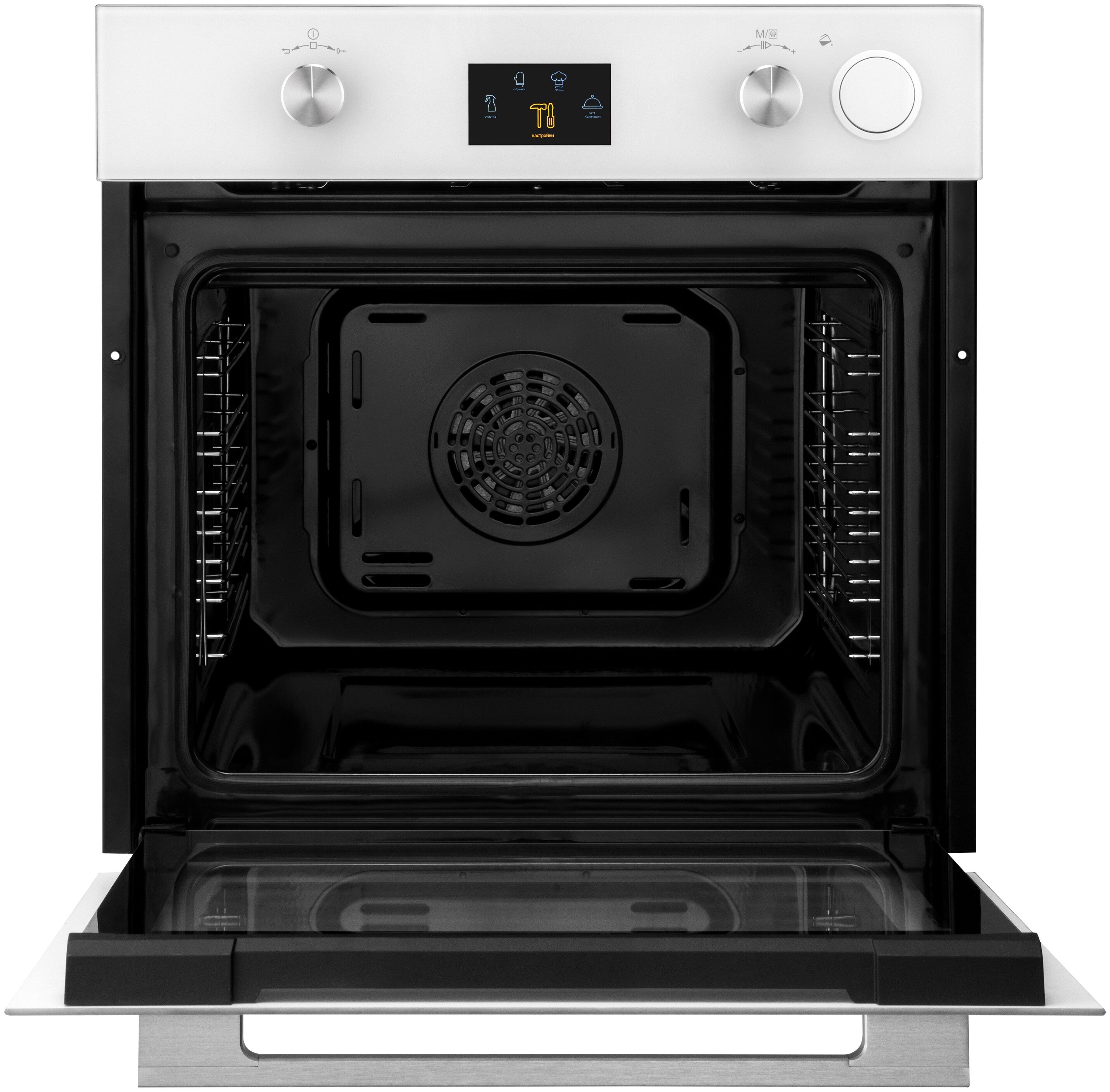 большой гриль, верхний нагрев + нижний нагрев, гриль + конвекция, конвекция, малый гриль