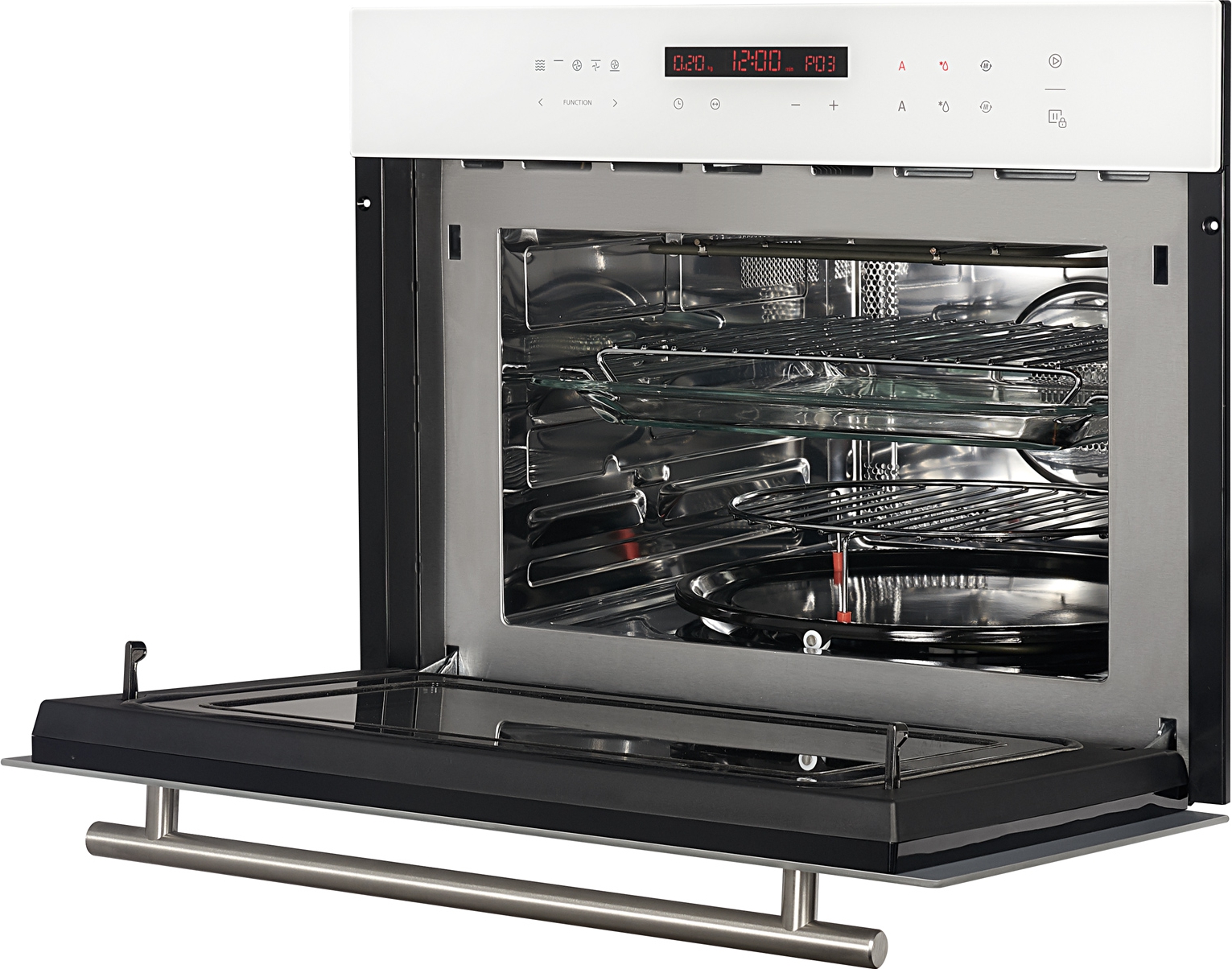 Особенности: 13 программ автоменю: "Свежие овощи", "Картофель очищенный/варёный", "Картофель жареный", "Курица/рыба", "Торт", "Закрытый пирог", "Открытый пирог", "Суп/напитки", "Разогрев порционной еды ", "Соусы/рагу", "Замороженная пицца", "Обжаренные ломтики картофеля или овощей", "Замороженная лазанья".
